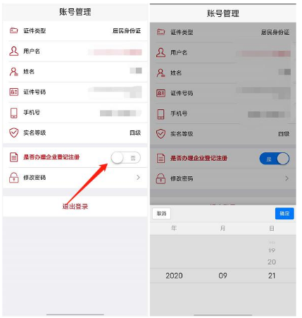 實(shí)名認(rèn)證步驟:選擇是否辦理企業(yè)登記注冊(cè)→選擇日期→人臉識(shí)別→認(rèn)證成功