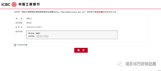 此頁面顯示的是,U盾持有人的身份信息,在“我已閱讀并同意”前面打勾,點擊“確定”按鈕。此時,頁面會彈出銀行的信息確認(rèn)頁面,在U盾上點擊兩次“ok”,銀行返回身份認(rèn)證結(jié)果信息,如下圖: