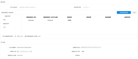 付匯業(yè)務(wù)通過核驗后,銀行操作員可查看《稅務(wù)登記備案表》詳情頁面,其樣式如下: