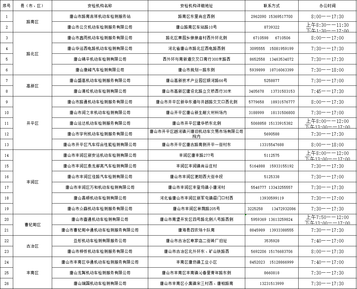 唐山市漢沽管理區(qū)機動車檢測服務(wù)機構(gòu)