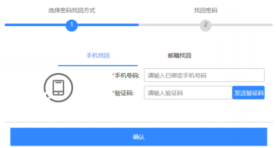 (3) 將短信中的驗證碼,輸入到“驗證碼”輸入框中,然后點(diǎn)擊“確認(rèn)”按鈕。驗證通過后,系統(tǒng)將進(jìn)入密碼找回界面。如下圖所示: