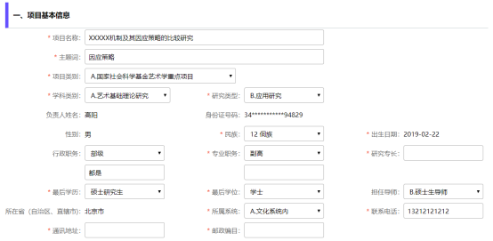 3) 按照項目申報要求,將待申報的項目信息資料,填入相應的輸入框中。信息輸入過程中,系統(tǒng)將隨輸入及時驗證輸入內容的合法性,并以紅色提示文字提示錄入問題。