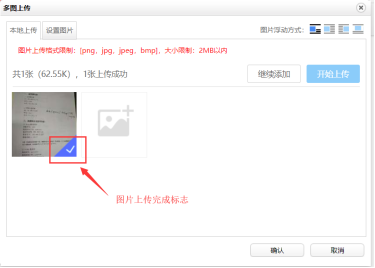(4) 點擊“開始上傳”按鈕,圖片將上傳到系統(tǒng)中,如下圖所示,表示圖片已上傳完成。