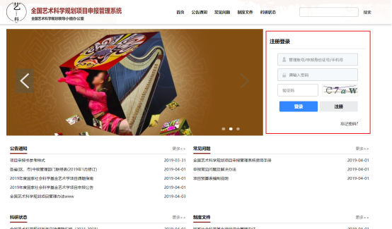 3)打開您安裝的瀏覽器,在瀏覽器地址欄輸入“申報(bào)管理系統(tǒng)”系統(tǒng)網(wǎng)址:http://yskx.mct.gov.cn,進(jìn)入系統(tǒng)首頁(如圖3.1-1所示)。
