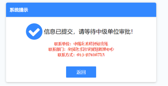 6)點(diǎn)擊“返回”按鈕,單位信息注冊(cè)完成。
