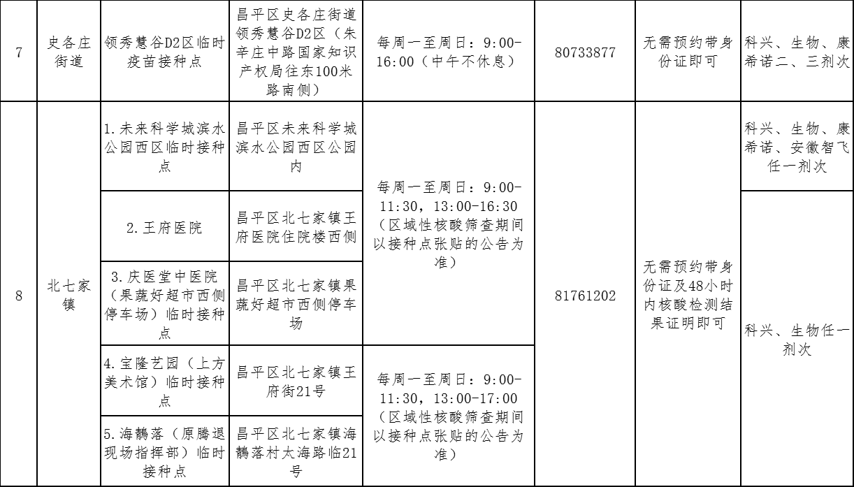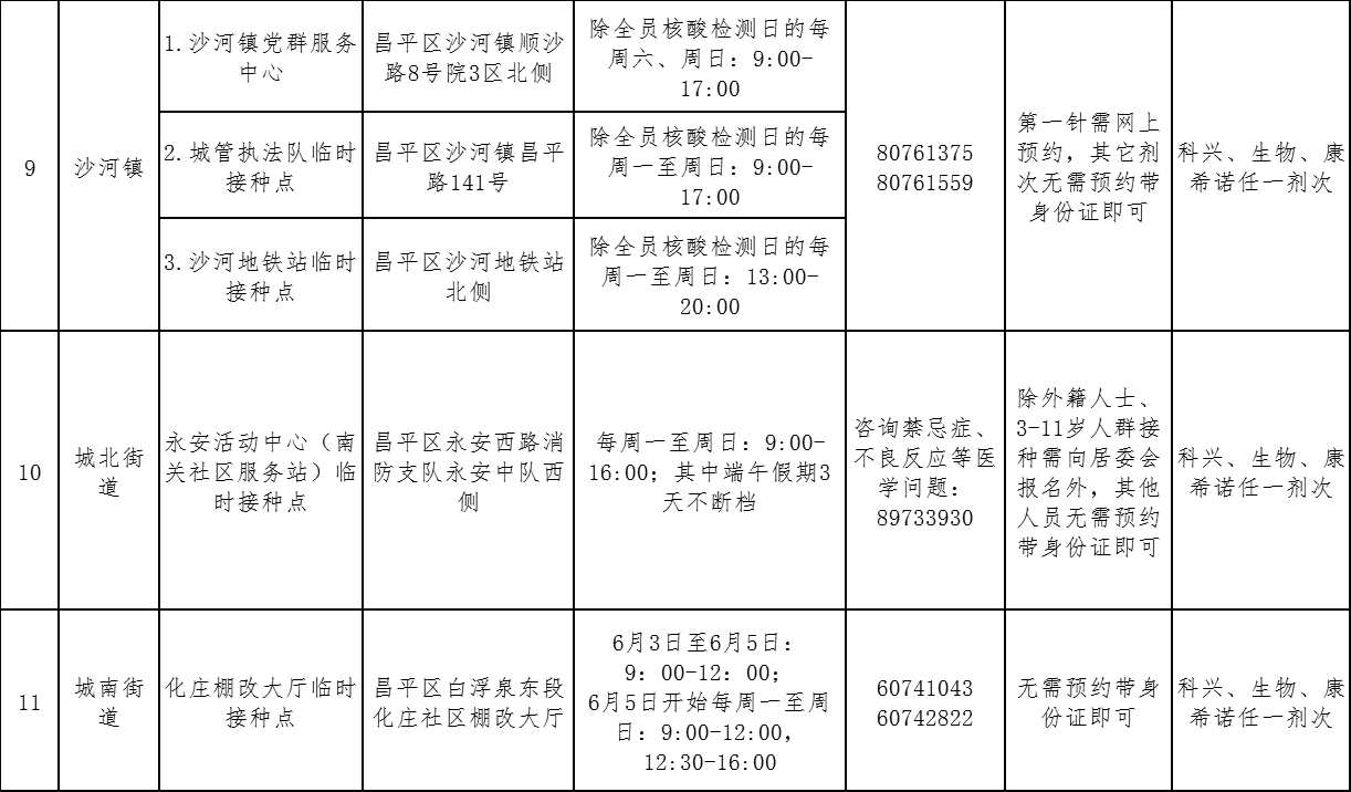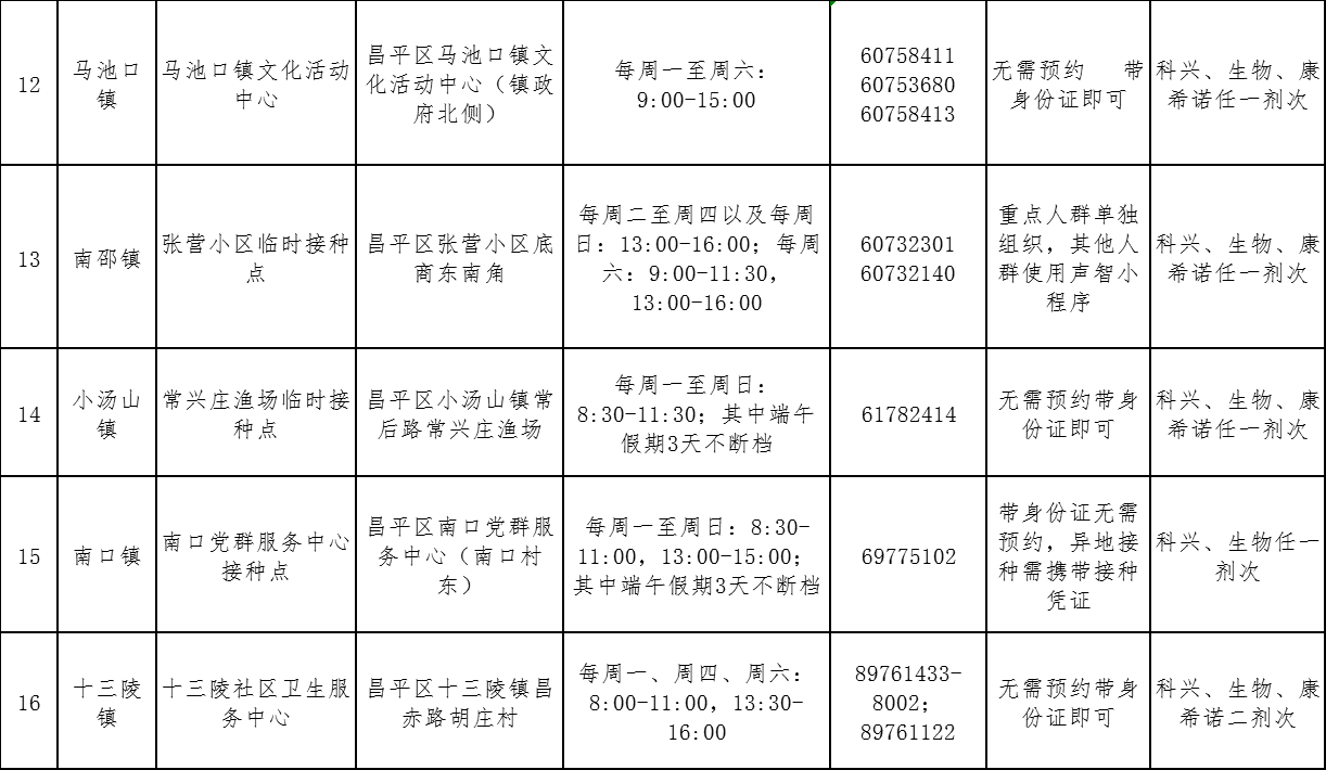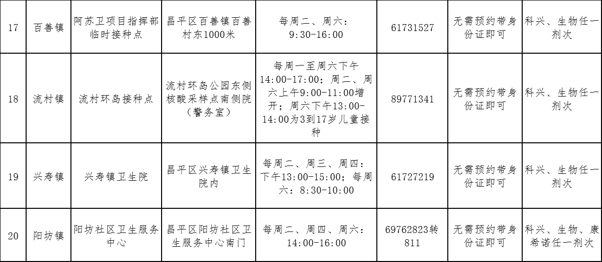 北京市昌平區(qū)接種點(diǎn)位設(shè)置及門(mén)診服務(wù)時(shí)間