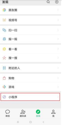 1.登錄個(gè)人微信移動(dòng)端,在“發(fā)現(xiàn)”欄目中點(diǎn)選“小程序”進(jìn) 入;