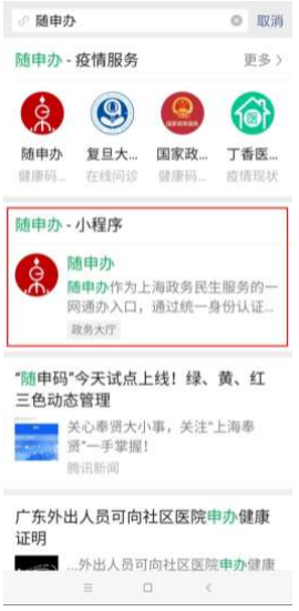 2.在小程序欄目中通過(guò)上方搜索按鈕 搜索“隨申辦” 小程序,點(diǎn)選進(jìn)入;