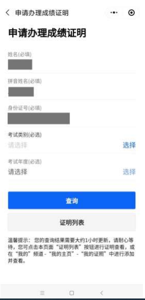 7.在辦理界面,選擇“考試類別”“考試年份”,即可查詢。