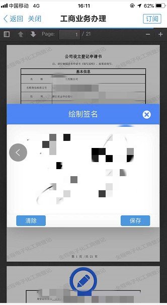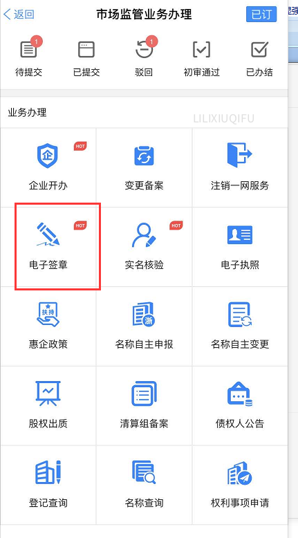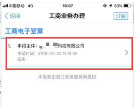 市場監(jiān)管業(yè)務(wù)辦理界面,點擊【電子簽章】,可查看到待簽名文件。