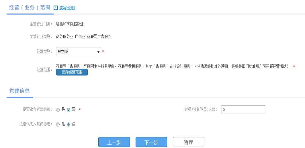 {placeholder tag=p i=469} {placeholder tag=span i=1004}{placeholder tag=img i=48}{placeholder tag=br i=18}“企業(yè)開(kāi)辦一窗通”系統(tǒng)支持股東是自然人和公司法人的內(nèi)資企業(yè)申報(bào),具體操作按照系統(tǒng)提示流程進(jìn)行填報(bào)。填報(bào)材料確認(rèn)后,自然人用“證照簽”簽名,公司法人用“電子營(yíng)業(yè)執(zhí)照”簽名。營(yíng)業(yè)執(zhí)照領(lǐng)取方式支持快遞。。。