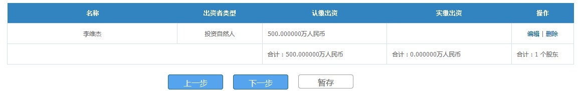 申報(bào)人填寫(xiě)股東出資信息,包括股東類(lèi)型、姓名、證件及認(rèn)繳信息等。