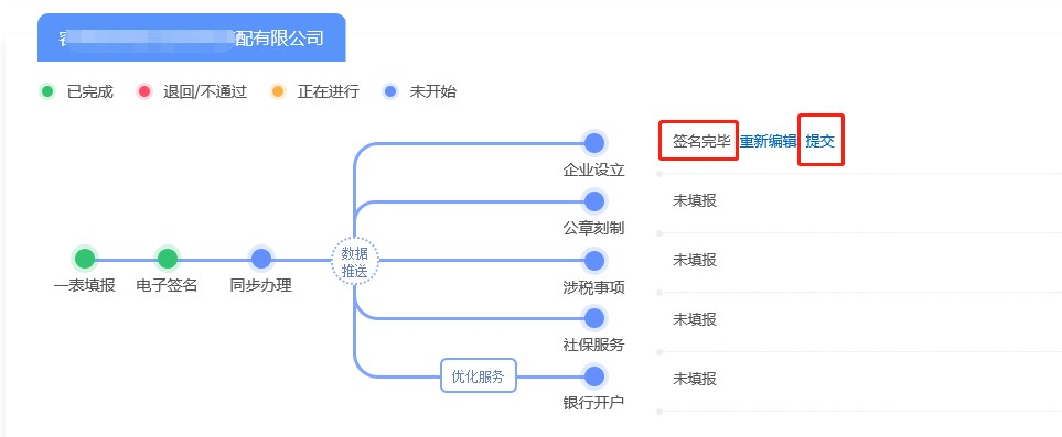 在辦理進(jìn)度追蹤里面找到該企業(yè),重新編輯,再次提交,進(jìn)行簽名。