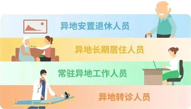 跨省異地長期居住人員包括異地安置退休人員、異地長期居住人員、常駐異地工作人員等長期在參保省外工作、居住、生活的人員。