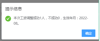 c) 在【本次調(diào)整人員名單】填寫“新繳費工資”,填寫完成后,點擊【提交】,彈出“提交確認”對話窗口,點擊【確定】,系統(tǒng)校驗【本次調(diào)整人員名單】的待工資調(diào)整信息,若校驗成功,返回提示:“提交成功。”;若校驗不成功,則返回提示;