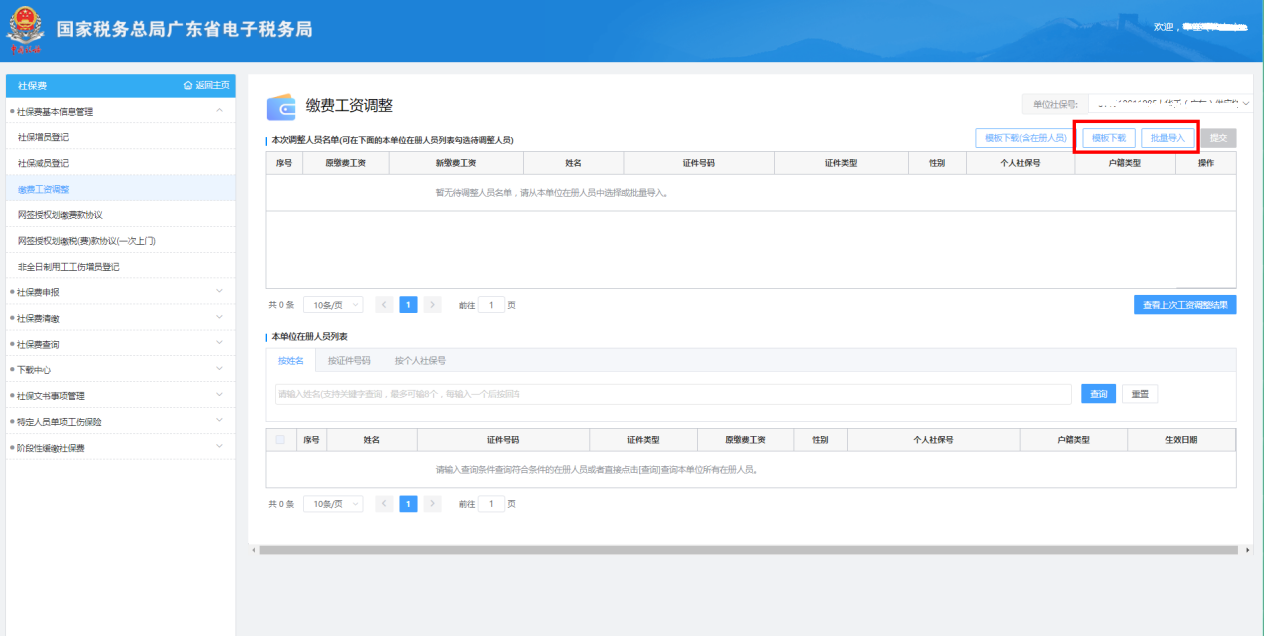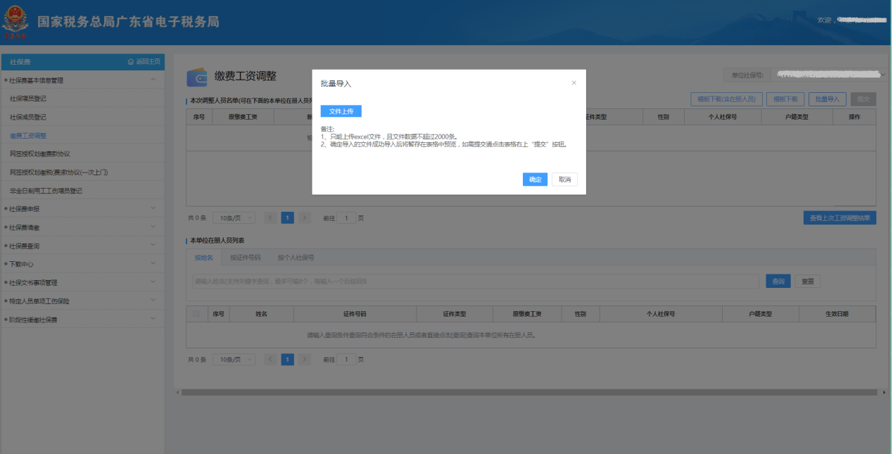 【批量導入】:批量導入調(diào)整繳費工資的人員信息;
