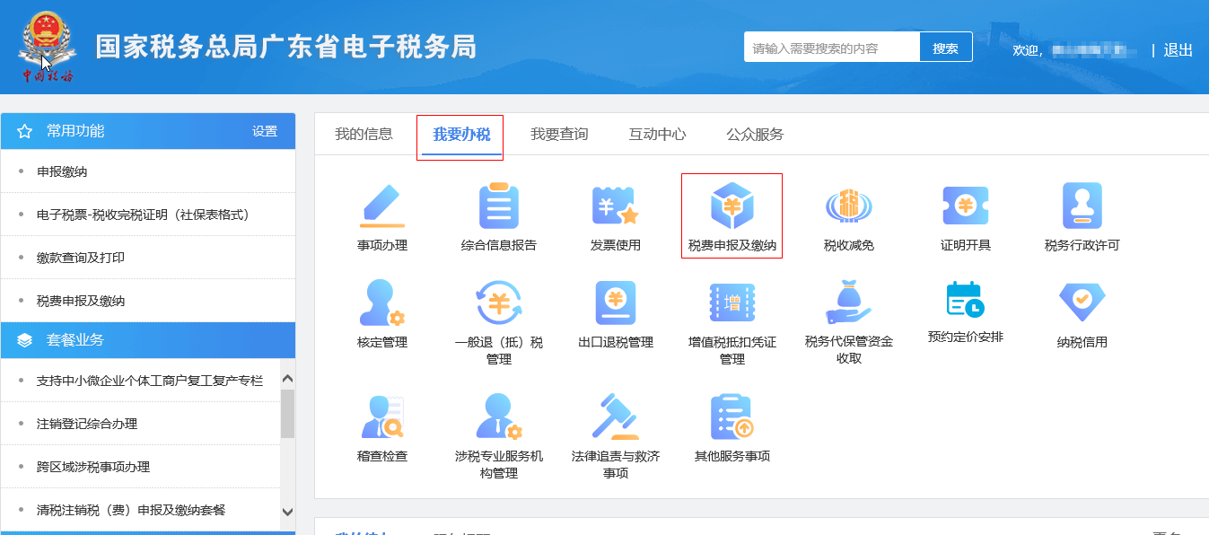 b)選擇【我要辦稅】-【稅費(fèi)申報(bào)及繳納】;