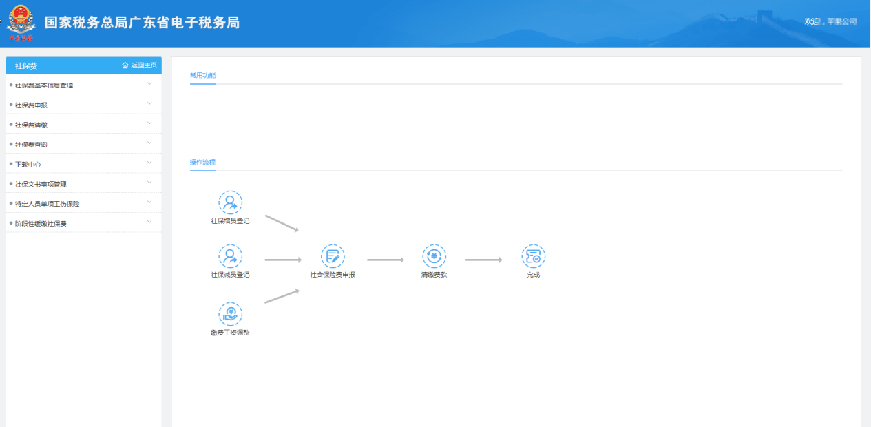 e)進(jìn)入社保費(fèi)系統(tǒng)后,點(diǎn)擊右側(cè)功能菜單辦理相關(guān)業(yè)務(wù)。