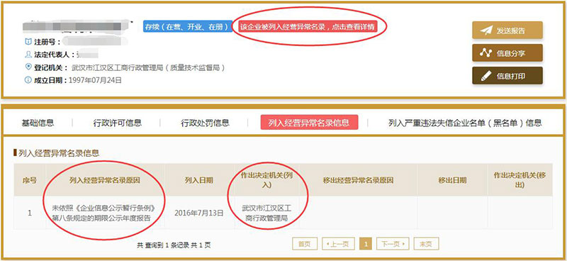 異常原因①:未按規(guī)定期限公示年度報(bào)告被列入經(jīng)營異常名錄的