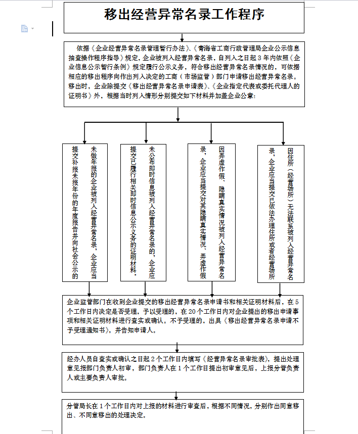 ●被列入經(jīng)營(yíng)異常名錄是什么原因 有四種情形: 1、因未依照《企業(yè)信息公示暫行條例》第八條規(guī)定的期限公示年度報(bào)告的;列入經(jīng)營(yíng)異常名錄。 2、因通過(guò)登記的住所或者經(jīng)營(yíng)場(chǎng)所無(wú)法聯(lián)系的;列入經(jīng)營(yíng)。。。