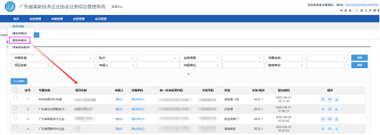 在“申報管理”→“項目申報”→“查詢申請書”中可以查詢到過往申報記錄,以及查看當時管理部門的審核意見。提供搜索提交,可以按條件進行項目搜索。
