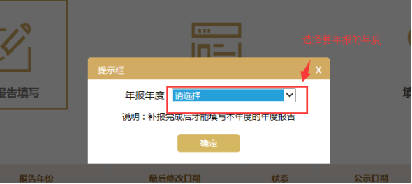 第二步:選擇填報年度。如往年未填報,須先補報,再報送2017年度的年報。