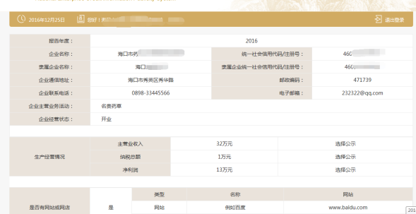 年度報告公示信息查詢