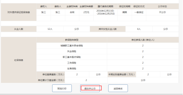 第九步:預(yù)覽打印與提交并公示。企業(yè)確認信息無誤,可提交并公示年報信息。