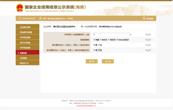 第九步:填寫黨(團(tuán))建信息。中共黨員(包括預(yù)備黨員)人數(shù),黨(團(tuán))員人數(shù)為截至年度報(bào)告年份12月31日的人數(shù)。此類信息為不公示信息。