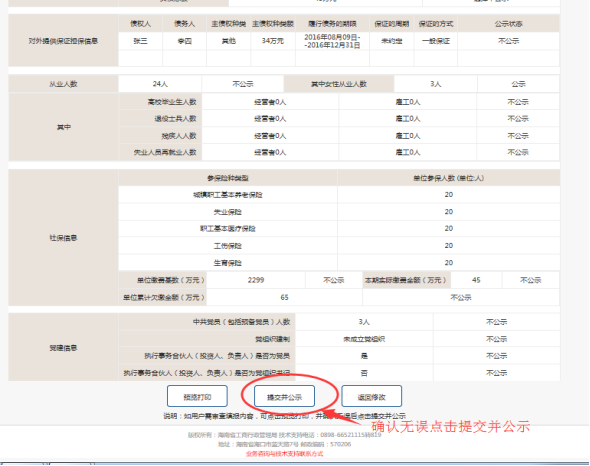 第十一步:預(yù)覽打印與提交并公示。企業(yè)確認(rèn)信息無(wú)誤,可提交并公示年報(bào)信息。