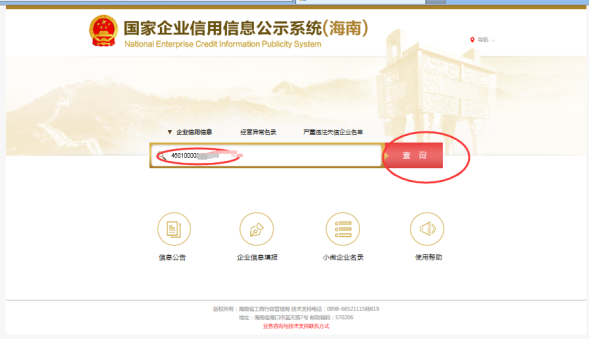 第一步:輸入企業(yè)名稱或注冊(cè)號(hào)。