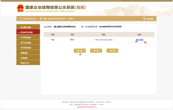 第五步:填寫“網(wǎng)站或網(wǎng)店信息”,可添加多條網(wǎng)站或網(wǎng)店信息,也可修改或刪除信息。