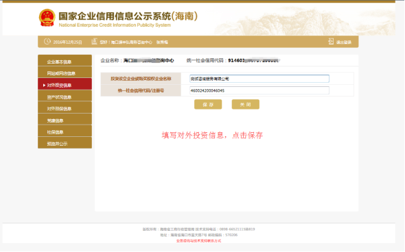 第六步:填寫“對(duì)外投資信息”。
