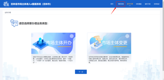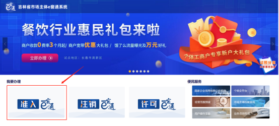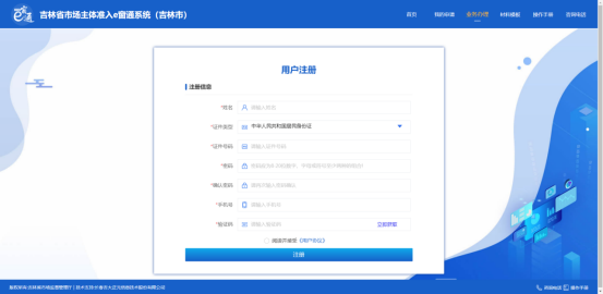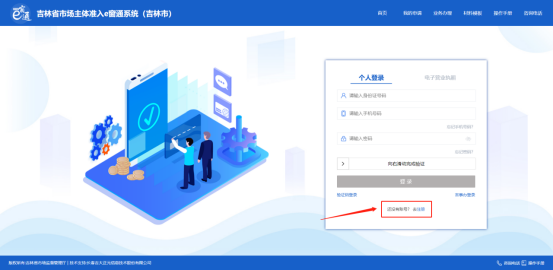 1.點擊上圖準入e窗通【馬上申請】,進入吉林省市場主體注入e窗通系統(tǒng)。如下圖:
