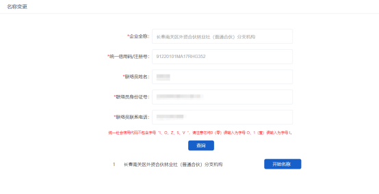 3. 填寫企業(yè)信息,點擊查詢,顯示企業(yè)信息,點擊開始【開始變更】