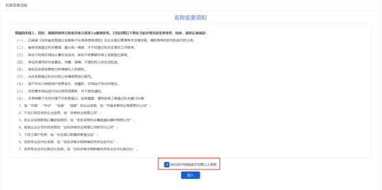 4. 進入名稱變更須知頁面,勾選已同意條款,點擊【進入】