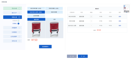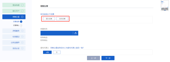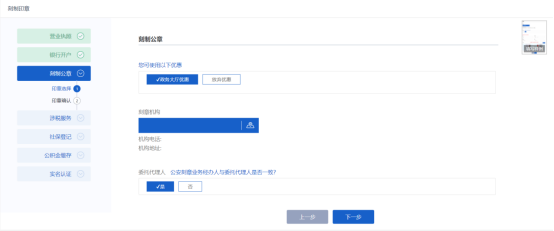 22) 上傳委托人信息后點(diǎn)擊“下一步”進(jìn)入刻制公章頁面如下圖: