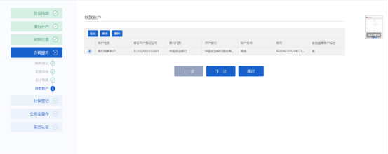 29) 完善會計信息后點(diǎn)擊“下一步”進(jìn)入存款賬戶頁面如下圖