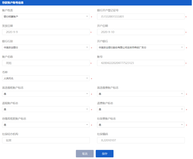 31) 點(diǎn)擊“添加”或“修改”填寫存款賬戶信息如下圖:
