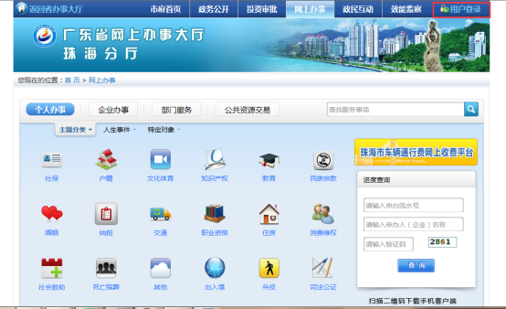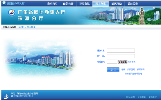 在當(dāng)前頁(yè)面的導(dǎo)航條上點(diǎn)擊“網(wǎng)上辦事”按鈕,進(jìn)入網(wǎng)上辦事頁(yè)面。