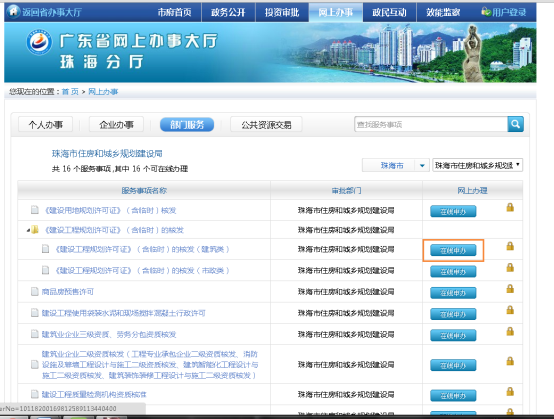 第一步:選擇其中一個(gè)事項(xiàng),點(diǎn)擊“在線申辦”按鈕。