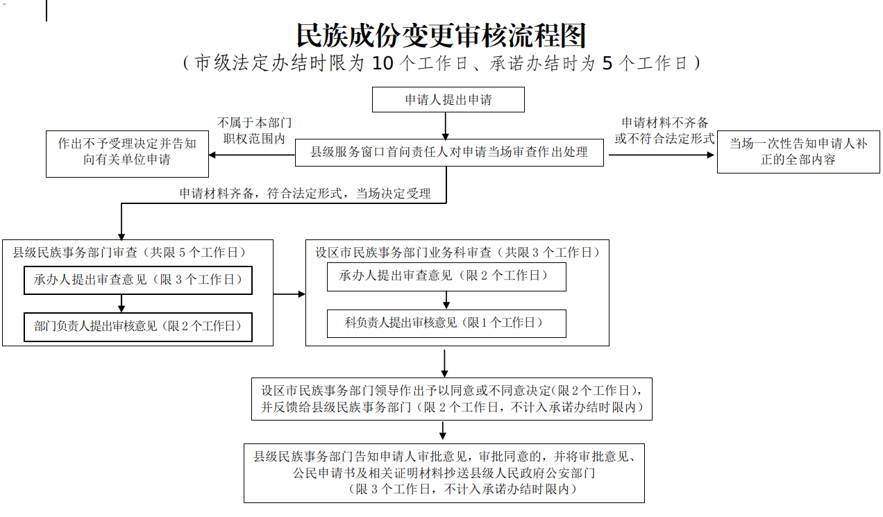 答:未滿十八周歲的公民,有下列情況之一的,可以申請變更其民族成份一次。 (一)父母婚姻關系發(fā)生變化,其民族成份與直接撫養(yǎng)的一方不同的; (二)父母婚姻關系發(fā)生變化,其民族成份與繼父(母)的民族成份不同的; (三)其民族成份與養(yǎng)父(母)的民族成份不同的。 年滿十八周歲的公民,在其年滿十八周歲之日起的兩年內(nèi),可以依據(jù)其父或者其母的民族成份申請變更一次。