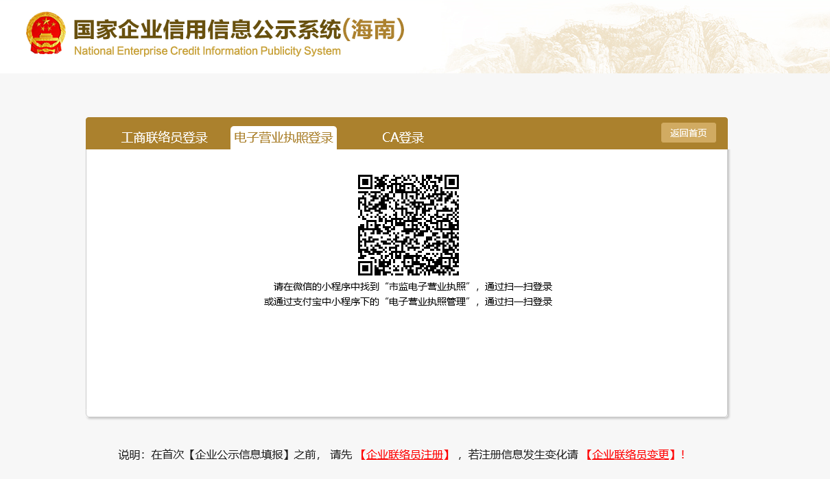 使用電子營業(yè)執(zhí)照登錄的,應(yīng)當(dāng)按頁面提示使用小程序掃一掃登錄。