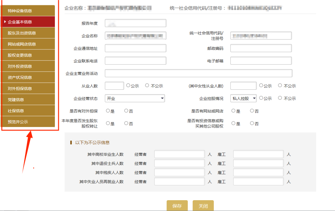 注意事項:1、2、6項信息,為企業(yè)報送年度報告時的信息;其余信息為企業(yè)所報年份12月31日的信息。“多報合一”年報信息內(nèi)容不向社會公示,由公示系統(tǒng)推送給相關(guān)管理部門。