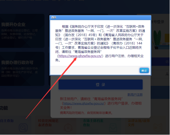 注:根據(jù)《國務院辦公廳關于印發(fā)〈進一步深化“互聯(lián)網(wǎng)+政務服務”推進政務服務“一網(wǎng)、一門、一次”改革實施方案〉的通知》(國辦發(fā)〔2018〕45號)和《青海省人民政府辦公廳關于印發(fā)〈進一步深化“互聯(lián)網(wǎng)+政務服務”推進政務服務“一網(wǎng)、一門、一次”改革實施方案〉的通知》(青政辦〔2018〕144號)工作要求,需前往“青海省政務服務網(wǎng)”(https://www.qhzwfw.gov.cn/)進行用戶注冊、辦理相關業(yè)務。