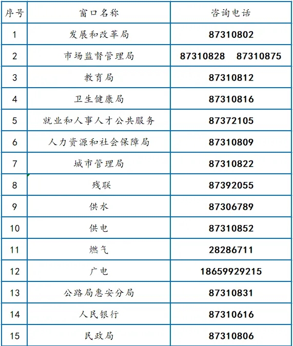 惠安縣政務服務中心各辦事窗口咨詢電話