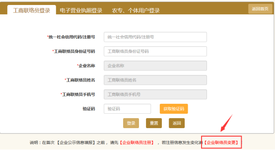企業(yè)聯絡員發(fā)生變更后可以通過【企業(yè)聯絡員變更】進行變更,變更后企業(yè)可以使用新聯絡員進行登錄。