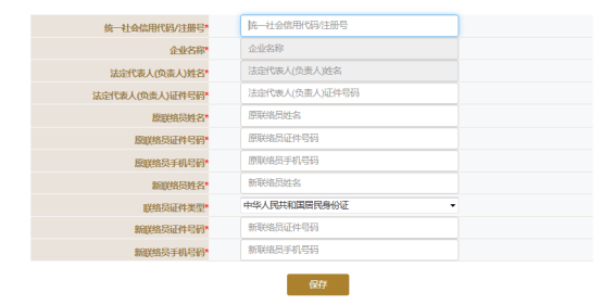 注意:企業(yè)聯絡員變更時如果不知道原聯絡員信息或提示原聯絡員信息錯誤需要去登記機關核實原聯絡員信息;灰色框中的信息是自動關聯出來的,如果沒有顯示請核實統一社會信用代碼/注冊號是否輸入正確,確認無誤仍未關聯請撥打技術支持電話。