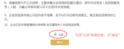 勾選“已閱”后,點“確認”,即可進入年報填報界面。