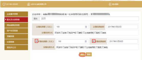 本頁面填寫企業(yè)年報年度內(nèi)股東及出資信息。